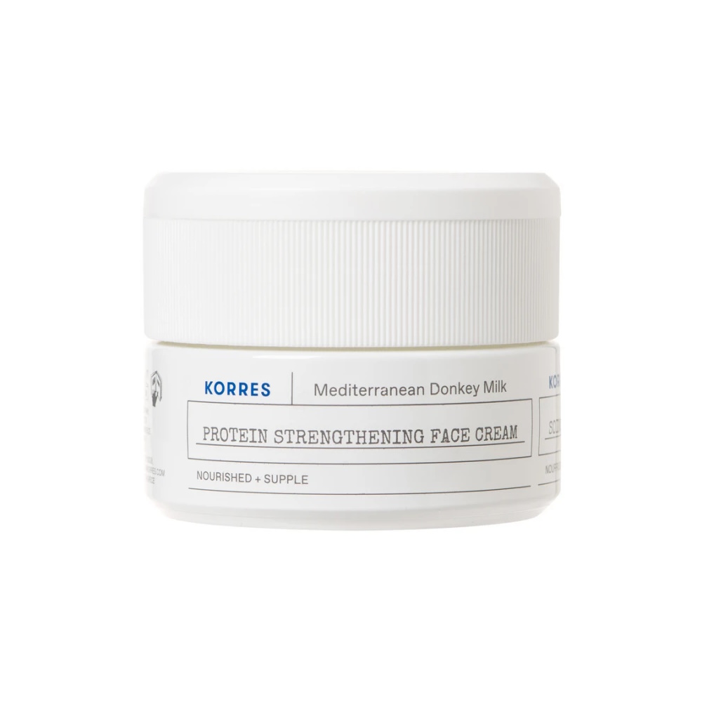 Ενυδατική κρέμα προσώπου για ενισχυμένη θρέψη με πλούσιο σύμπλεγμα πρωτεϊνών ενδυνάμωσης από γάλα γαϊδούρας και βιταμινών Ε και Β5 που δρα για 48 ώρες και θωρακίζει το δέρμα χαρίζοντάς του υγιή, λαμπερή και νεανική όψη.